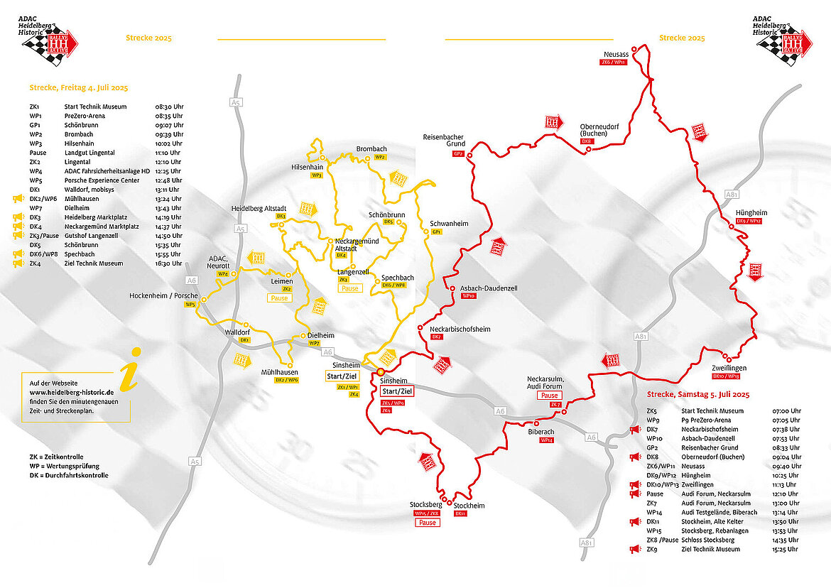 Hier finden Sie die minutengenauen Streckenpläne der ADAC Heidelberg Historic 2025